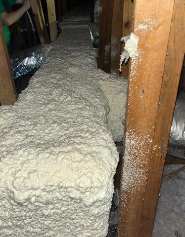 This Murrells Inlet homeowner originally called Klaus Roofing for a small roof repair. Upon completing this repair and doing final checks, the roof repairmen noticed the damage to the homeowner's insulation from that roof leak. He was then referred to Carolina Energy Conservation who sent out a specialist and confirmed this during a free attic inspection. Carolina Energy Conservation then removed his old, damaged insulation and replaced it with all new cellulose, air sealed the attic, and finally encapsulated the ductwork to ensure balanced air conditioning throughout the whole house. This saves the homeowner up to 30% of conditioned air throughout the summer.